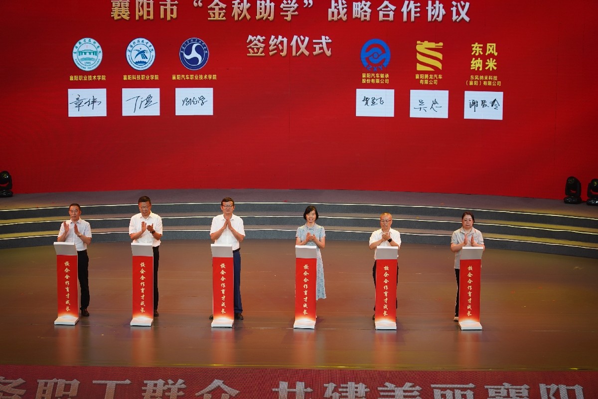 活动现场,在市总工会的协调对接下,襄阳职业技术学院、襄阳科技职业学院、襄阳汽车职业技术学院、襄阳汽车轴承股份有限公司、襄阳腾龙汽车有限公司、东风汽车纳米科技(襄阳)有限公司签订了“校企合作育才成长”协议。