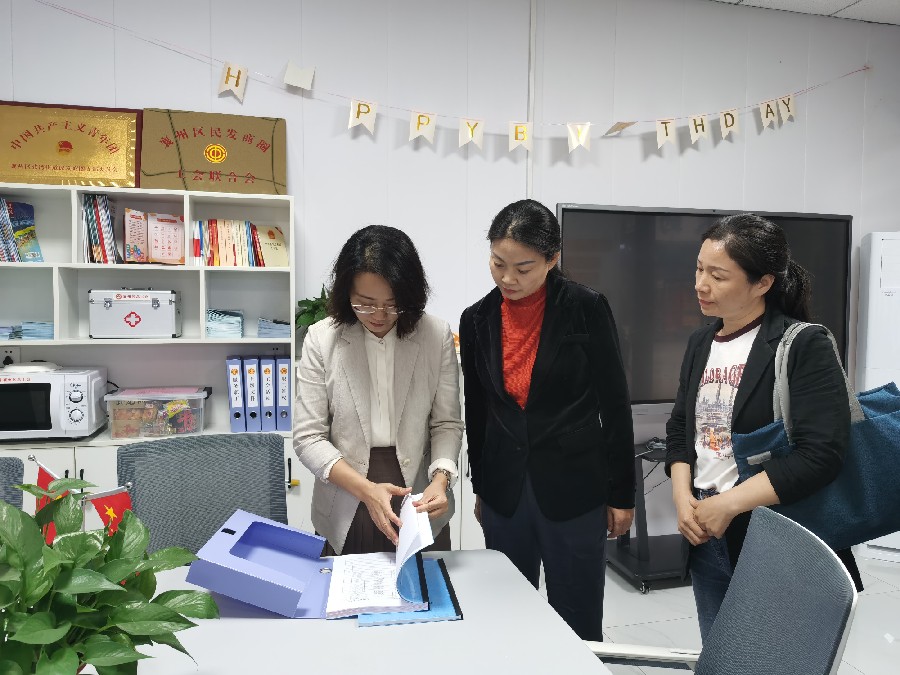 梅玫一行实地察看了襄州区张湾街道西湾社区职工之家、托管班、民发商圈爱心驿站,对襄州区西湾社区联合基层工会规范化和阵地建设进行了指导,并就“小三级”工会人员、经费等问题进行了深入探讨。