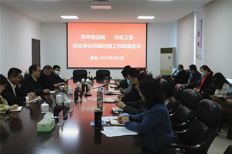 (通讯员:王星懿)3月4日下午,襄阳市中级人民法院和市总工会在市总工会召开2021年首次劳动争议诉调对接工作联席会议。