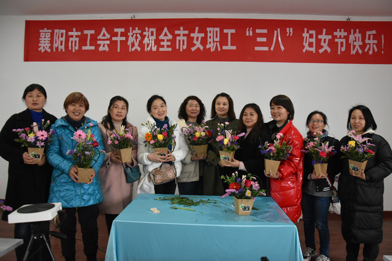 (通讯员:杜若飞 袁永波)3月8日下午,市工会干校在人民广场校区开展一系列特色鲜明,生动活泼的趣味培训活动。 在艺术插花现场,基层工会的女职工们兴致盎然的学习了鲜花保存、花型设计、插花技巧等花艺知识。并现学现做,通过自己构思、设计造型,完成了一件件属于自己的创意作品。
