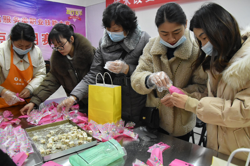 在西式面点教室,女职工们分组围坐在一起,团结协作,尽情发挥,用面、糖、油脂和乳品为原料,辅以干鲜果品,经过调制、成形、成熟、装饰等过程制成雪花酥,牛轧糖、手工酸奶等色、香、味俱佳的西式面点。 参加活动的女职工对自己的作品爱不释手,纷纷合影留念。趣味培训活动使女职工们度过了一个温馨和谐,快乐向上的节日。