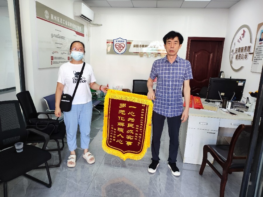 (通讯员:窦梦雅)7月7日一大早,古女士来到襄州区总工会送上两面锦旗,对襄州区“法院+工会”调解员张思军表达感激之情。