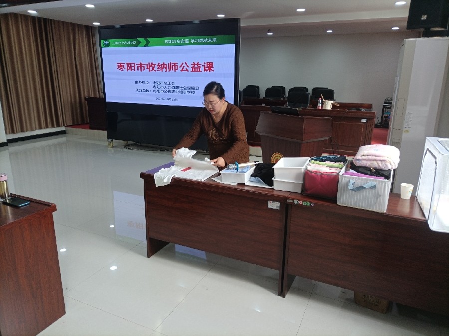 (通讯员:孙琳琳)为进一步丰富职工群众业余生活,提升职工群众技能水平,拓宽再就业人员就业渠道,10月25日,枣阳市总工会联合市人力资源和社会保障局在市工人文化宫四楼开展“知收纳技巧 懂生活乐趣”收纳整理公益培训课。