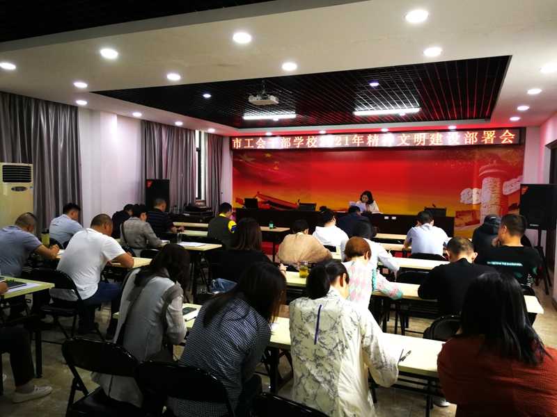 会议传达学习了习近平新时代中国特色社会主义思想和习近平总书记关于精神文明建设的重要论述。宣读了市工会干部学校2021年精神文明建设实施方案,并对今年重点工作任务进行安排部署。