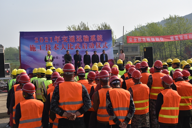 (通讯员:张建勇 姚东圆)近日,由枣阳市总工会、交通运输局主办,公路管理局、路建公司承办的公路建设施工技术大比武活动拉开帷幕,来自四个项目部代表队的120名施工和管理人员身着统一标志服、佩戴安全帽齐聚比赛线段,在水泥稳定碎石基层机械摊铺施工、施工测量等比赛项目中同台竞技,一展风采。