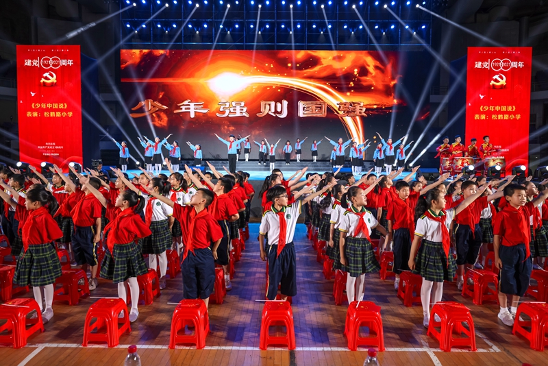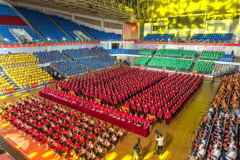 全区机关事业单位3000多人组成六个方阵,以“逐梦前行”“风华正茂”“扬帆远航”为主题,分三个篇章,通过重温入党誓词、视频快闪、现场大合唱、分组联唱、经典诵读、典型讲述、播放宣传片等形式,通过老中青三代来讴歌中国共产党带领全国各族人民艰苦奋斗取得的丰硕成果,展现党的十八大以来樊城经济社会发展的新亮点、新成就。每个方阵的革命歌曲歌声嘹亮、催人奋进;红色诵读铿锵有力、豪情万丈;舞台上的舞蹈婀娜多姿,与歌声融为一体。全场人员挥舞着小红旗,激情高昂。 柴普军指出,此次举办的庆祝建党100周年的首个大型文艺盛会,是一个彰显全区党员干部形象、展示樊城风采的有效载体,更是一首营造全社会开展“永远跟党走”群众性教育活动的磅礴序曲。
