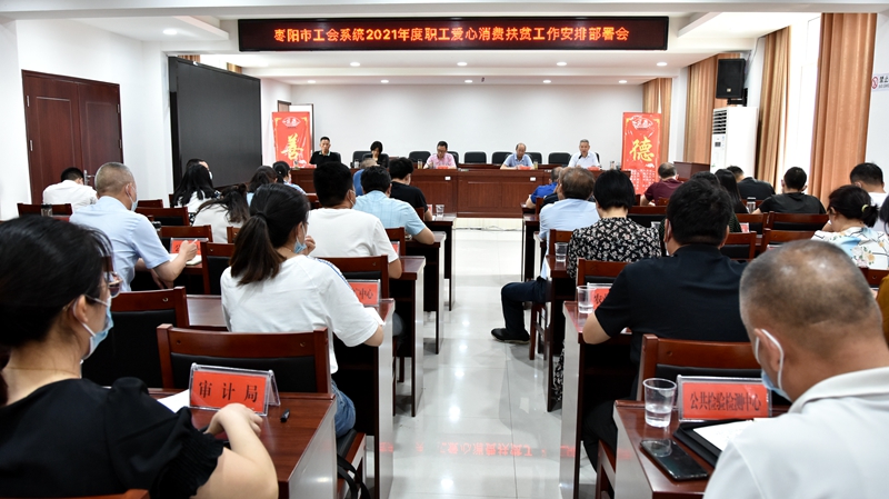 (通讯员:李敏)6月25日上午,枣阳市总工会召开工会系统2021年度职工爱心消费扶贫工作安排部署会,全市一级预算单位工会主席和各镇(办、区)工会主席、协理员参加了会议。