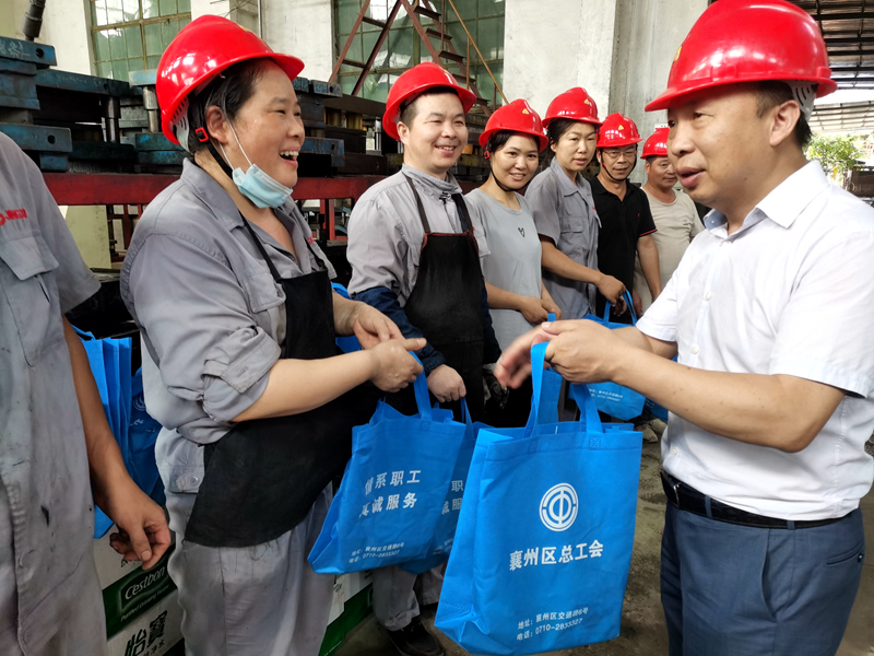 近日,襄州区总工会全面启动“夏日送清凉”活动,给坚守在生产一线的员工送去毛巾、香皂、洗发水等日用品,把关爱送到职工心坎上。