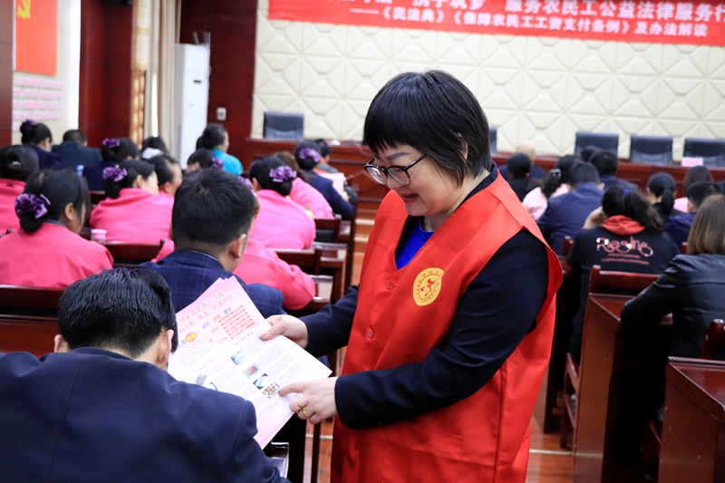 活动中,县总工会特邀律师杜耀家对《中华人民共和国民法典》中的合同法、婚姻法、物权法编进行以案说法解读;县人社局副局长、总工会兼职副主席王学洪对《保障农民工工资支付条例》、《保障农民工工资支付办法》进行详细解读;市妇幼保健院教授杨翠荣结合医学专业对《女性疾病的保健与预防知识》进行详细讲解,呼吁女同胞要加强自我卫生健康保健,做到美丽与知性并重,健康与幸福同行。 活动期间,县总工会志愿者还向企业职工发放了《保障农民工工资支付条例》、《女职工劳动保护特别规定》、《禁毒宣传册》等宣传资料,并就困难帮扶和职工重大疾病医疗互助、职工维权知识及政策等相关业务作了详细解答。