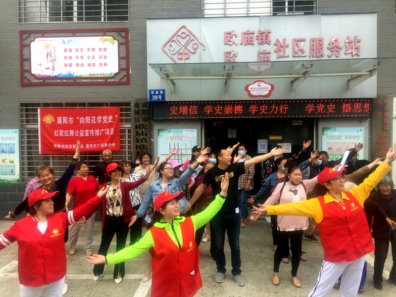 (通讯员:熊金环)5月27日,襄城区欧庙镇工会联合会联合镇妇联、襄阳市广场舞协会在欧庙社区开展“向阳花 学党史”红歌红舞公益宣传活动。