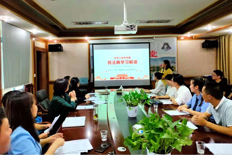 (通讯员:徐鸣旻 陈金鹏)日前,宜城总工会组织开展《中华人民共和国民法典》专题学习会,邀请市崇法律师事务所律师刘宁授课。 会上,刘宁律师就《中华人民共和国民法典》的出台背景、宗旨原则、重大意义及劳动争议解释新增、变化部分进行了详细阐述。她通过生动、贴近生活的案例讲解,使枯燥乏味的法条深入浅出的展现出来,让与会人员更好地理解和掌握。 授课结束后,与会人员还就工作中遇到的相关问题与刘宁律师进行了探讨和交流。大家纷纷表示,此次学习进一步掌握了《中华人民共和国民法典》的核心要义,充分认识到《中华人民共和国民法典》的重要作用,也增强了学法、守法、用法意识。