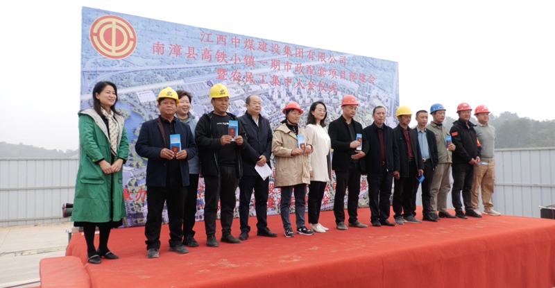 近日,江西中煤建设集团有限公司南漳县高铁小镇一期市政配套项目部工会及农民工集中入会仪式在县高铁小镇一期项目部举行。市总工会副主席梅玫,县总工会党组书记、常务副主席廖明伟,县总工会副主席冯青参加活动。