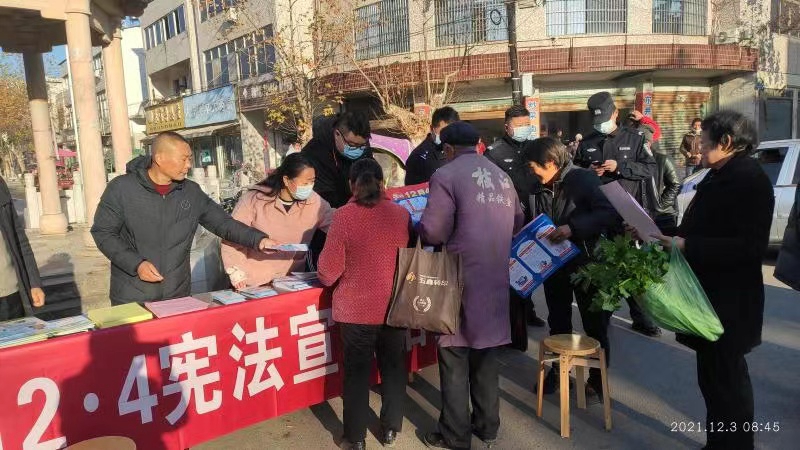 12月3日,吴店镇工会联合派出所、法庭、税务分局、民政办等30多家单位及村(社区)齐聚中心街转盘处,开展“12·4”国家宪法日宣传,活动现场通过开展“学法知法”普法宣传、“你问我答” 法律服务、“普法讯息”扫码关注、“法律援助”志愿服务,深入浅出地宣传宪法知识与宪法精神,受到群众的广泛欢迎。活动现场,共发放宪法宣传资料2000余份、宪法宣传海报500份。