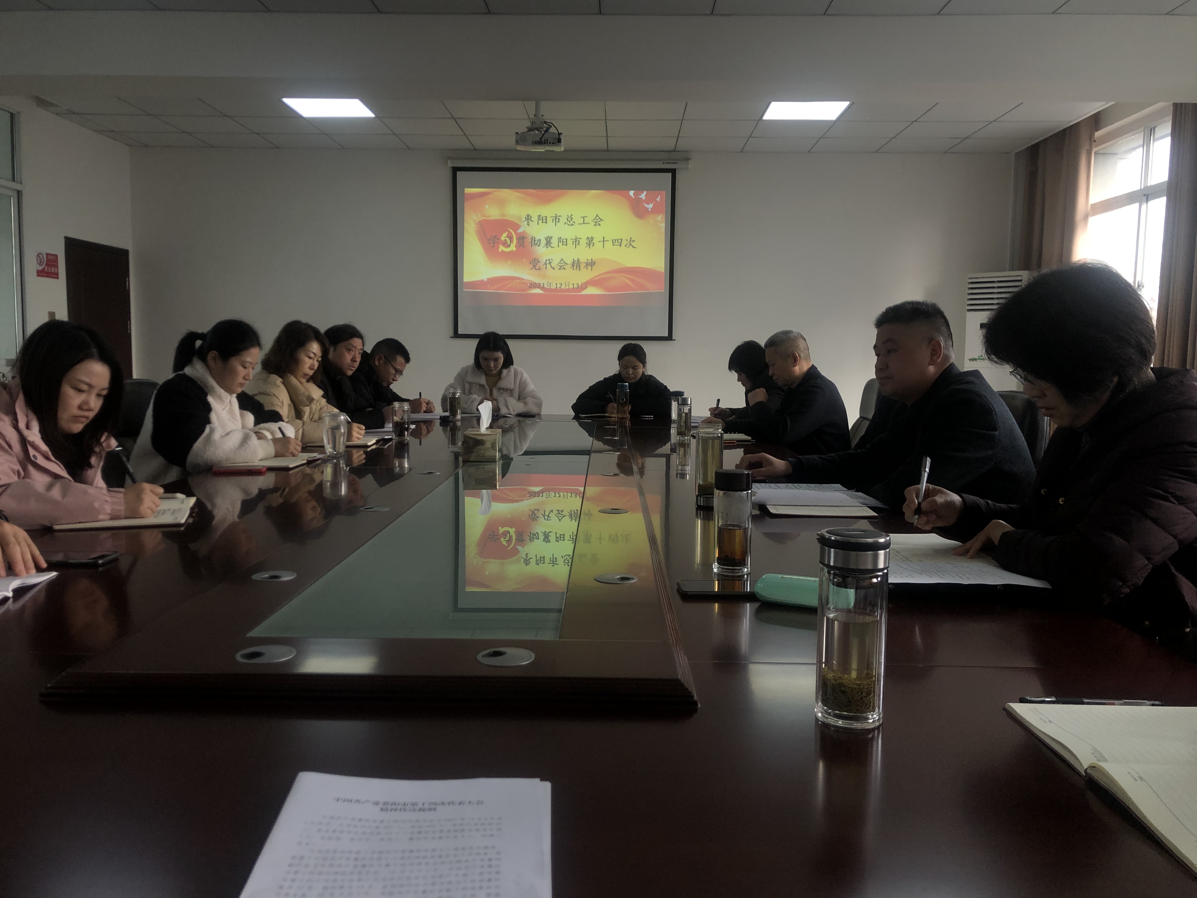 12月13日,枣阳市总工会召开学习贯彻襄阳市第十四次党代会精神专题会议,市总工会党组书记孙建新主持会议并就学习贯彻落实工作提出明确要求,枣阳市总工会及文化宫全体干部职工参加会议。