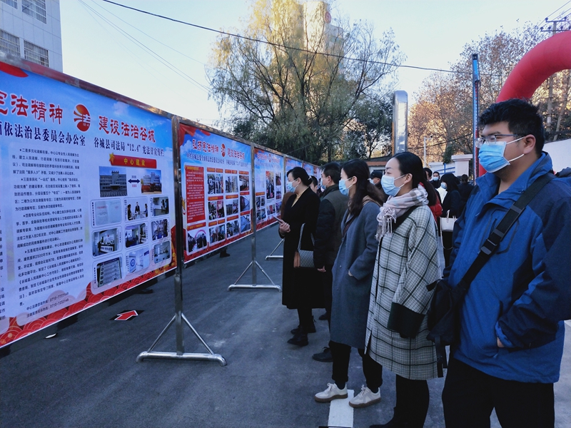 12月3日上午,谷城县举办国家宪法日宣传活动,县总工会职工志愿者在"宪法宣传活动图片展”现场开展普法宣传,向来往群众发放宪法、劳动法、工会法宣传册等资料,对参观职工群众提出的法律问题进行现场解答。(谷工宣)