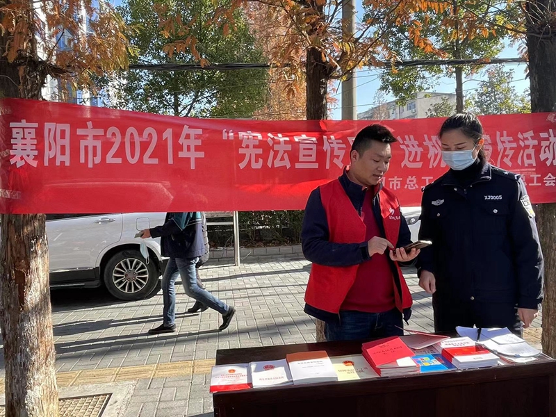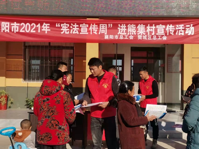 (通讯员:尚白莹)今年12月4日是第八个国家宪法日,“八五”普法的开局之年。为进一步提高辖区全民宪法意识,营造浓厚的法治文化氛围,79991cm德彩网联合樊城区总工会通过多种形式,精细策划、精心组织,开展2021年“12·4”宪法宣传周系列活动。本次宪法宣传周以“以习近平法治思想为指引,坚定不移走中国特色社会主义法治道路”为主题,深入学习宣传党的十九届六中全会精神,深入学习贯彻习近平法治思想,大力加强宪法学习宣传,弘扬宪法精神,持续营造尊法学法守法用法的浓厚社会氛围。  送法进机关 法治入人心 为进一步加强干部队伍法治教育,增强宪法精神对领导干部工作的指引,牢固树立依法行政意识,区总工会在樊城区委开展“宪法宣传周”活动。  送法进社区 便民暖人心 朝虹社区组织工作人员开展“宪法微课堂”学习宣讲活动,在辖区内掀起学习《中华人民共和国宪法》的热潮;旭东社区还组织辖区商户通过LED显示屏滚动播放弘扬宪法知识的宣传语,云兴、襄棉、茂盛等社区通过向辖区居民发放宣传单的形式,向辖区居民、党员干部宣讲宪法知识,解读宪法精神,通过举例发生在居民生活中的真实案例,增强社区居民法律意识,学会用法律保护自身的合法权益,耐心解答居民提出的各项问题,致力于把相关法律法规讲得“接地气”,为群众“解难题”,从而提高群众的法律意识和维权意识,让群众感受到新时代必须真心信法、主动学法、遇事找法,共同弘扬法治精神。 送法进乡村 普法得人心 区总工会依托牛首镇熊集村和太平店镇王堤村农民工维权服务站进行普法宣传,针对农村群众法治需求和关注的热点问题,重点宣传关于“三农”、实施乡村振兴战略,打赢脱贫攻坚战、土地管理、土地承包等方面的法律法规。当日,活动现场以摆放宪法文本和宪法宣传资料、法律法规知识读本,宣传横幅、法律知识有奖问答等形式,集中宣传了《保障农民工工资支付条例》等法律法规,并适时开展了扫黑除恶、打击治理电信网络新型犯罪、防范非法集资、世界艾滋日等法治宣传和法律志愿服务活动,使宪法学习宣传更加贴近基层、贴近群众,增强活动互动性和参与度。  送法进企业 守法筑同心 79991cm德彩网和樊城区总工会开展的送法进企业“宪法宣传周”主题活动在天元四季城、苏宁易购举行。并邀请公益法律援助律师进行“宪法知多少”的宣讲活动,他们用生动形象的语言、精辟独到的论述、细致严谨的专业知识,对宪法效力与权威、法律援助程序及范围、《中华人民共和国民法典》等内容进行了详细的阐释和解读,引导企业依法治企,合规经营,依法维权,送法入耳入脑入心。苏宁易购总经理陈爽表示,企业普法十分重要,也非常必要,平时企业经营生产繁忙,往往重生产、求效益,常常忽视了企业的法治建设,这堂生动的宣讲课,让我们转变了观念,知道了学法懂法的重要性。 此次樊城区“12·4宪法宣传”系列活动共开展法治宣讲10余场次,向职工发放法律法规书籍资料800余册,接待群众法律咨询50余人次,取得较好的宣传效果。