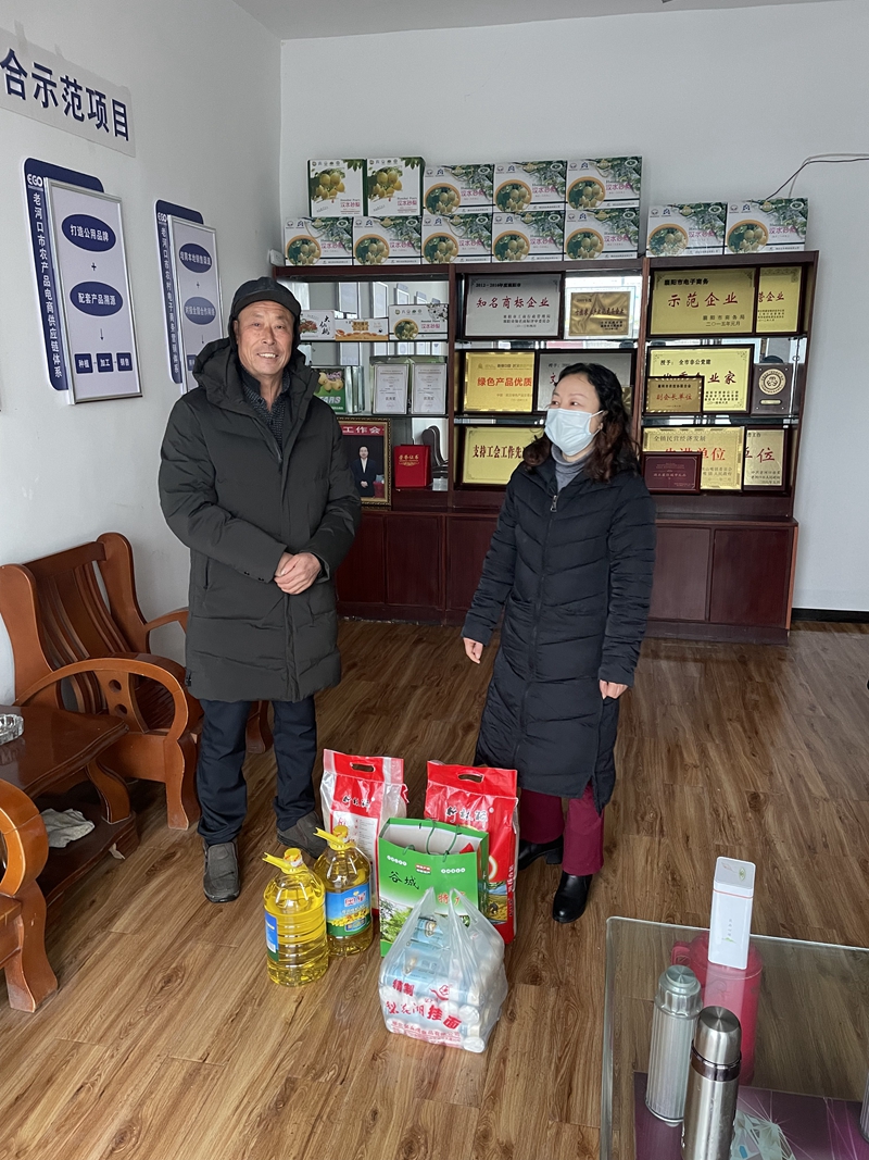 在慰问活动中,马勇一行对企业生产经营情况、疫情防控情况、稳岗留工举措和工会工作开展情况进行了调研,并仔细询问职工的工作生活情况,向他们送上了米、面、油、木耳等慰问物资。