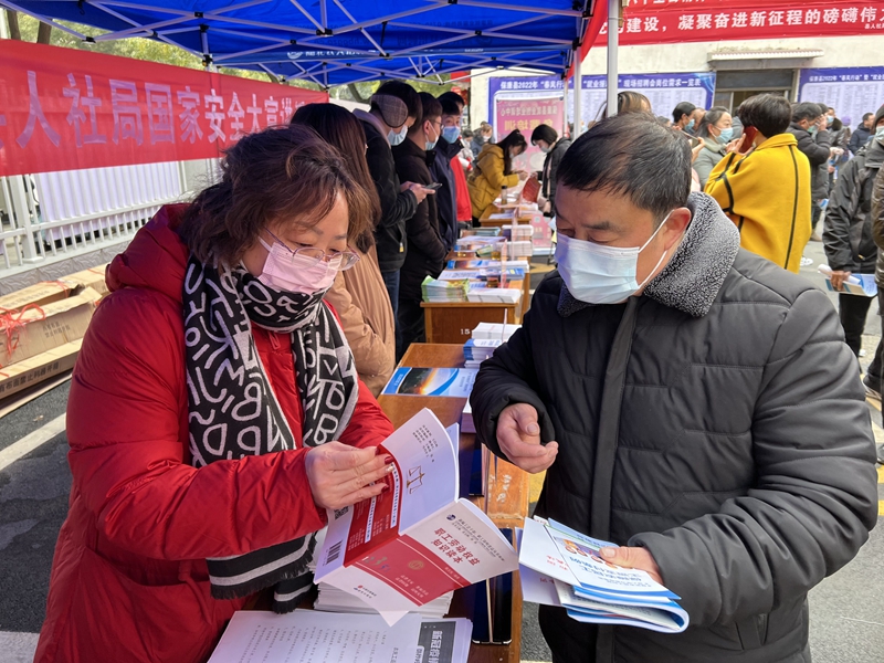 活动现场县总工会发放《农民工返岗须知》、《农民工进城务工读本》、《农民工工资支付条例、办法》、《女职工特殊权益保护条例》等宣传资料1000余份。