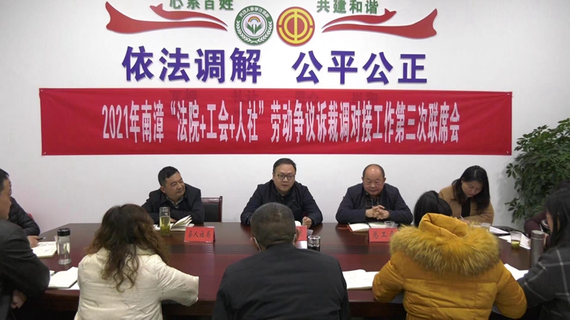 (通讯员:段波)近日,南漳县人民法院、南漳县总工会、南漳县人社局联合召开“法院+工会+人社”劳动争议诉裁调对接工作第三次联席会议。