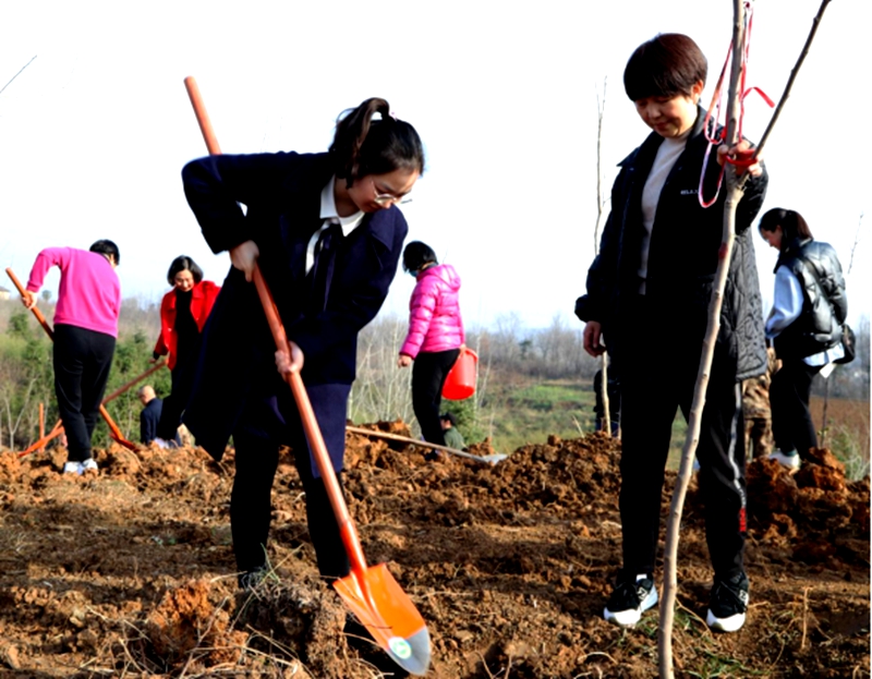 石花镇工会联合石花妇联、石花林站组织镇、村(社区)女职工开展以“期待春天,播种绿色”为主题的植树活动,大家齐心协力种下一棵棵树苗,植下一片片新绿,经过1个多小时的劳动,共植树木600余株,为“生态石花,绿色石花”播下新的希望。