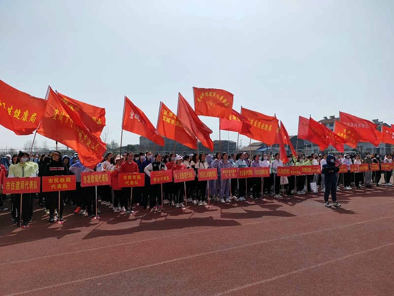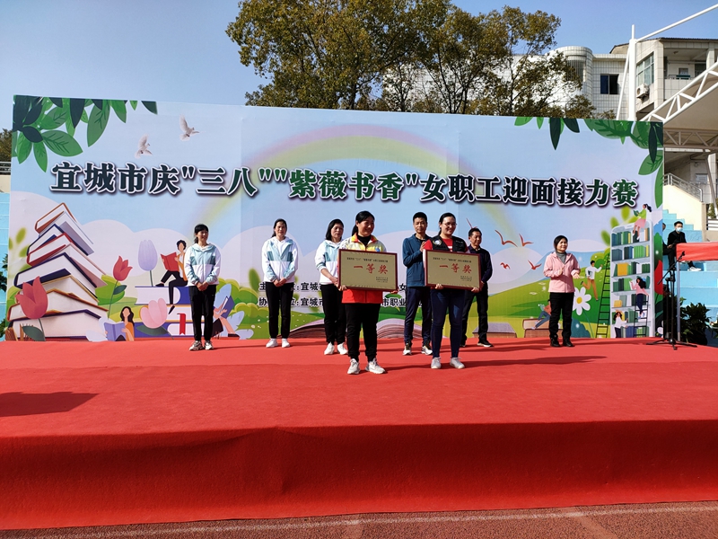(通讯员:丁雪婷 贾玉芬 罗学勇)3月7日下午,宜城市总工会联合市妇女联合会在宜城市职业高级中学开展纪念“三八”“紫薇书香”女职工迎面接力赛活动。宜城市委常委、组织部长、市总工会主席王海,市总工会党组书记、常务副主席徐全兵、市妇联党组书记沈玉桥出席。
