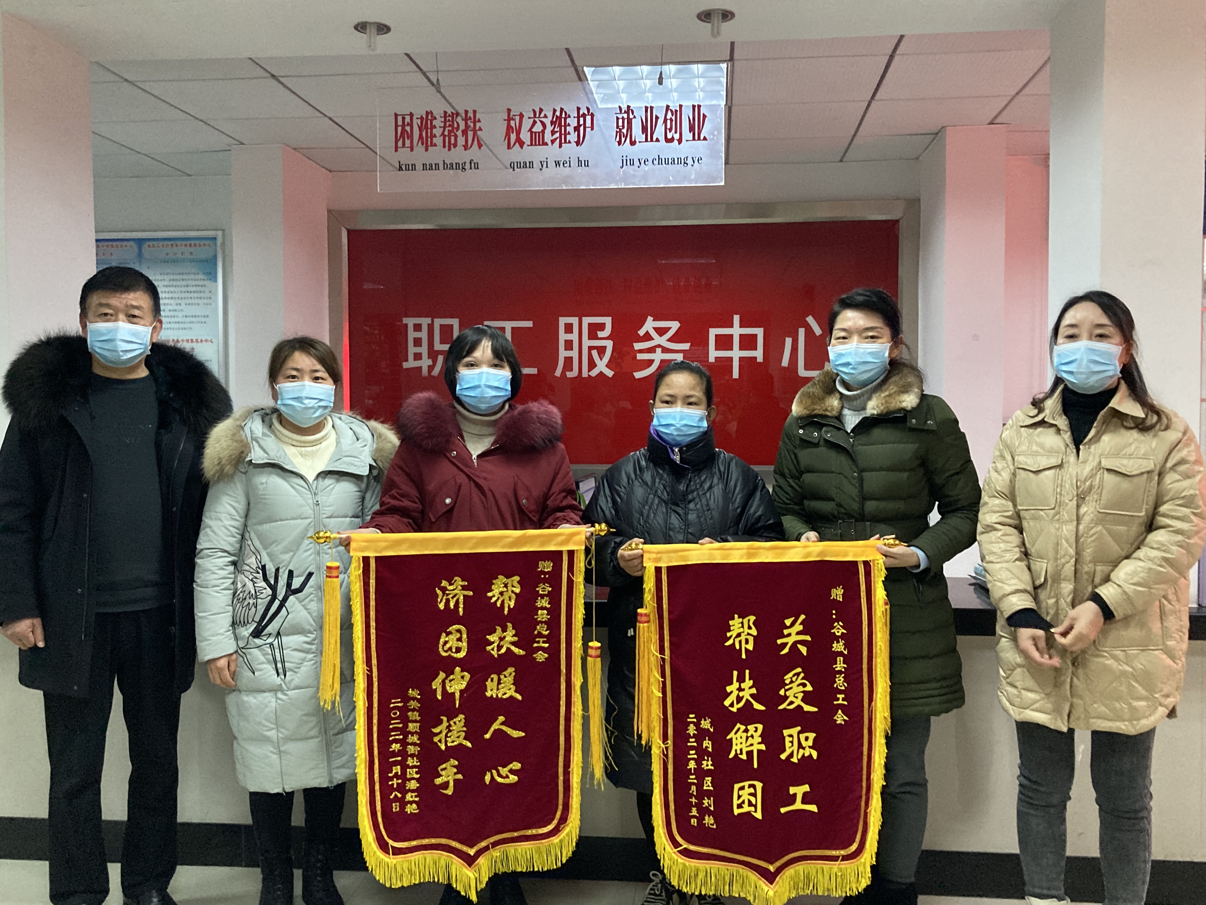 2月17日,室外大雪纷飞,在谷城县总工会职工服务中心内却是暖意浓浓。湖北三环车桥公司、城关镇、石花镇、县住建局、县国土资源局等6家单位的困难职工,向县总工会送来了一面面鲜红的锦旗,表达对工会“娘家人”的感激之情。 县供水总公司困难职工何定华紧紧握着党组书记、常务副主席邓婕的手激动地说道:“感谢工会!我的孩子患病后,是县总工会及时、持续的救助让我们看到生活的希望,顺利渡过难关。如今孩子也顺利考上大学,感谢县总工会多年来对我们的关心和帮助,你们真是比亲人还要亲啊!” “县总工会永远是你们最贴心的‘娘家人’,会尽最大力量来解决大家遇到的困难。”邓婕表示,县总工会将继续坚持以职工为中心,从职工群众最直接、最现实的问题入手,不断延伸服务触角,让职工群众更有获得感、幸福感、安全感。 据悉,2021年谷城县总工会共帮扶全县困难职工196户,资金总计93万元,其中建档立卡困难职工128户,帮扶资金77.7万。“两节”送温暖帮扶68户,帮扶资金15.3万元。(通讯员:方敏)