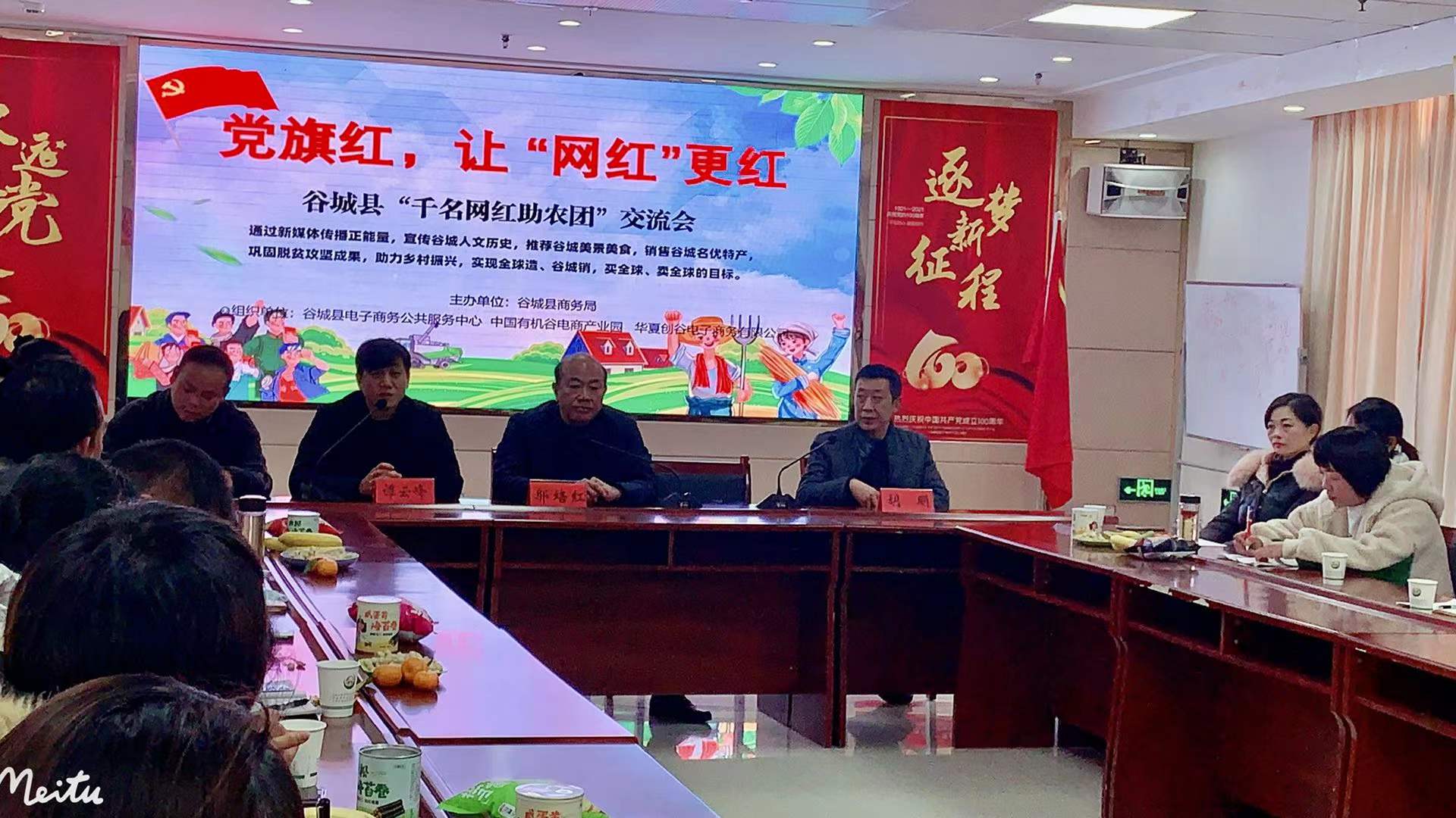 12月14日,谷城县“千名网红助农团”交流会在县电商园会议室举办。 座谈会上,来自全县各行各业的“网红”大咖齐聚一堂,通过现场座谈、视频交流、展示爆款产品、推销技巧,踊跃发言,为我县网络文化、网络经济的发展献计献策。 此次座谈会旨在鼓励和引领网络文化规范化发展,通过新媒体传播网络文化正能量,充分发挥网红粉丝量多、传播面广的优势,进一步发扬志愿服务精神,利用短视频网络平台的产品、技术等传播特点,宣传谷城人文历史,推荐谷城县美景美食,销售谷城名优特产,巩固脱贫攻坚成果,助力乡村振兴。(通讯员 龚喜)