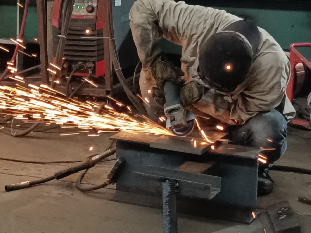 本次竞赛内容为在规定时间内独自完成试件的点固、焊接及清理。比赛现场弧光四射、焊花飞舞,参赛选手们佩戴焊接手套和护目镜,手持防护面具,按照赛事规则,双手在焊接材料间有条不紊地进行划线、切割、拼装、焊接、打磨,展现出良好的精神风貌和过硬的技术水平。