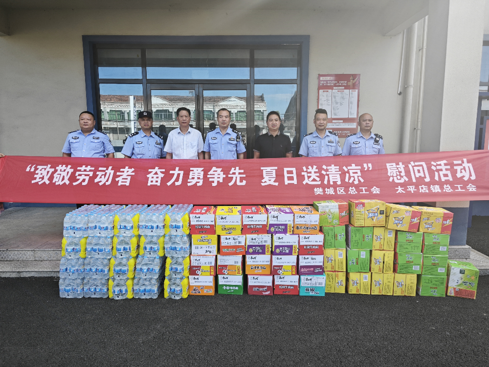为切实保障一线职工夏季身心健康,7月7日,樊城区太平店镇总工会在雄狮广场户外职工爱心驿站和太平店镇派出所开展“致敬劳动者 奋力争先”夏日送清凉活动,为环卫工人、城建城管、公安民警等奋斗在高温一线的劳动者们送上清凉大礼包与诚挚的慰问。