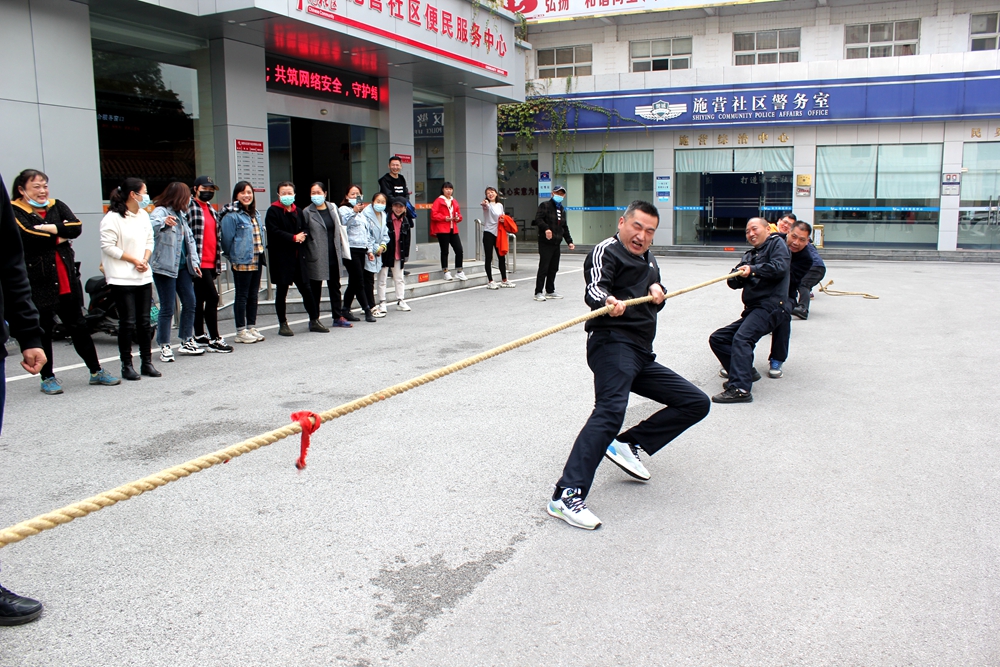 随着一声哨响,激动人心的“拔河比赛”正式开始了,大家都拼命地拉着赛绳使劲往后拉,一点一点地把对方拉入己方的阵地,眼看就要胜利了,但对方也不甘示弱,双方进行到激烈的拉锯战中。“加油!加油!加油!”,旁边的啦啦队也铆足了劲,为各自的队伍呐喊助威,一时间,热闹的声音响彻了整个社区。 “绑腿游戏”环节,各队员你追我赶,互相较劲。“接力赛跑”,大家拿出全身的力气,拼命地往前冲,在赛场上形成了另外一个竞赛高潮。