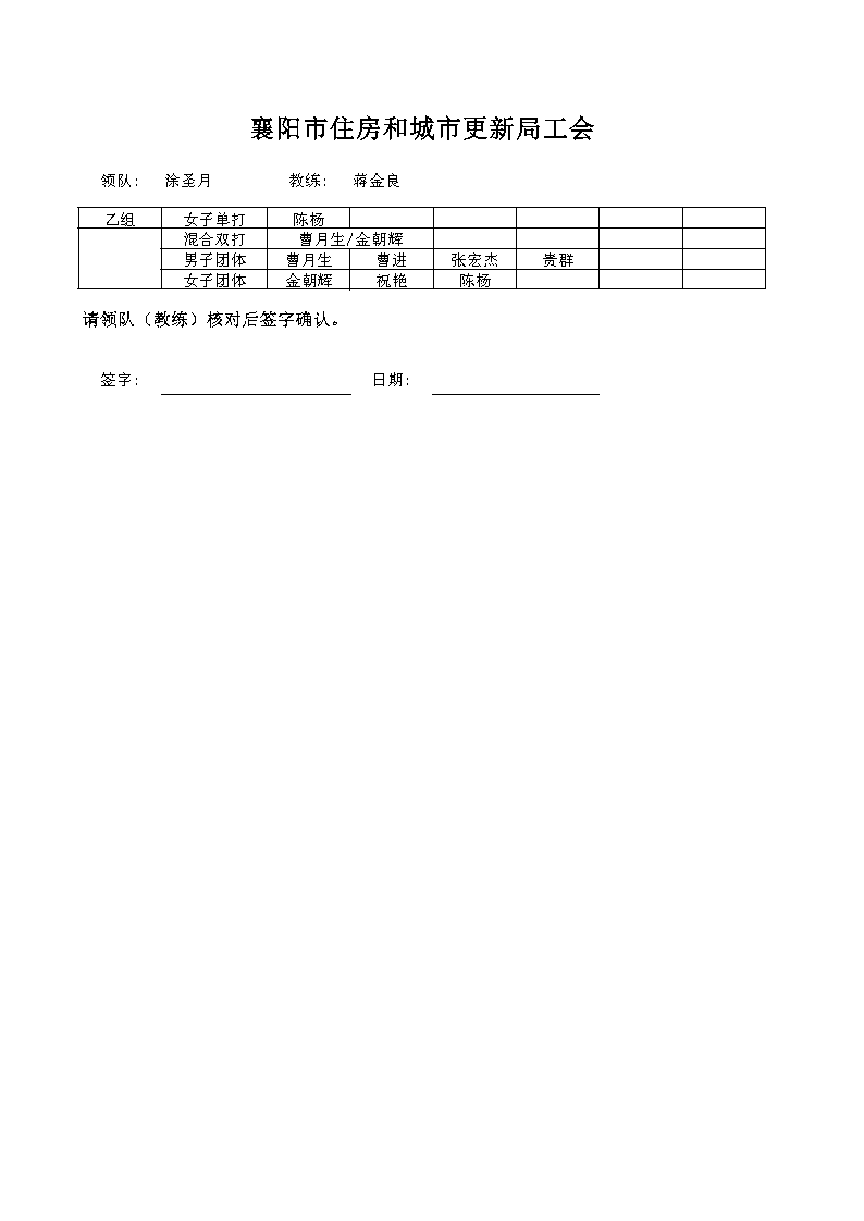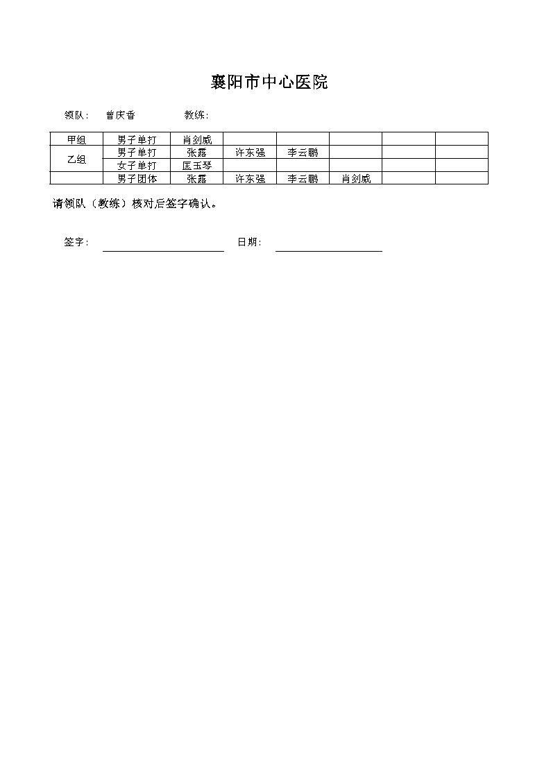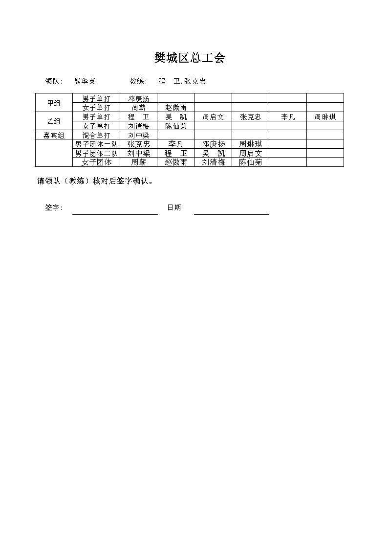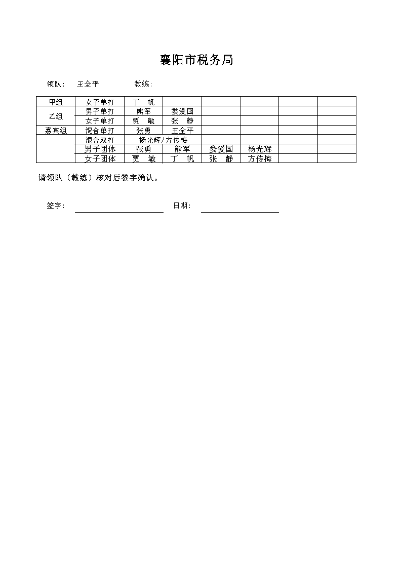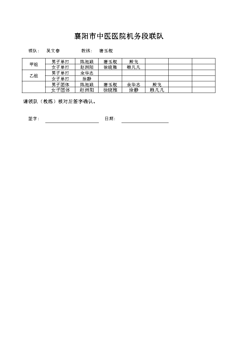强国复兴有我”2024年襄阳市职工乒乓球比赛名单公示