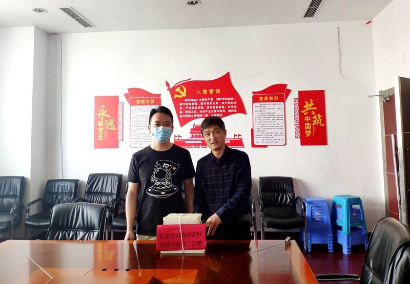 (通讯员:黄鹏昆)5月27日上午,老河口市总工会两新党建工作人员来到老河口市乒乓球协会党支部开展“党工共建活动”。并向协会党支部赠送党史类图书10余册、电子读书卡30张。