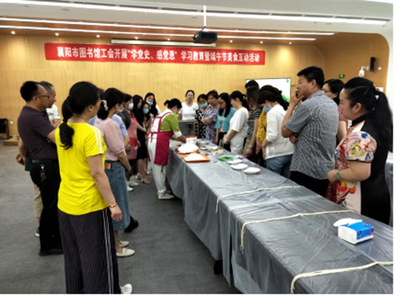 日前,襄阳市图书馆工会委员会联合宜城市福临家政烹饪培训有限公司组织馆全体工会会员开展“学党史、感党恩”学习教育暨端午节美食互动活动,把“学党史、感党恩”与传统美食相结合,把“中国红”融入精致的美食中,祝福祖国繁荣昌盛。(襄阳市图书馆工会供稿)