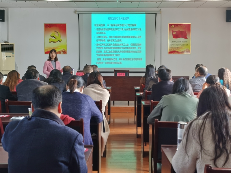 (通讯员:杨颖)11月19日,襄州区总工会开展职代会专题培训活动,特邀省总工会培训师资库4名老师进行授课,全区企事业单位工会主席和职工代表60余人参加。培训现场气氛非常热烈,台上台下互动交流频繁,会后,盈乐公司工会主席主动邀请相关教师再次赴企业开展送教培训。