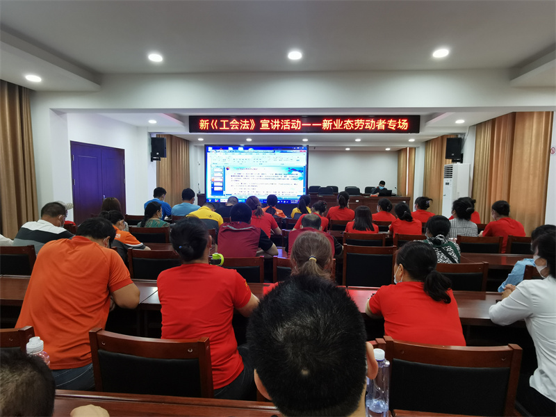 (通讯员:王群华)为提高新就业形态劳动者的法律意识,让广大新就业形态劳动者学法懂法用法,6月2日,枣阳市总工会邀请法律顾问王远律师在工人文化宫开展了新修订《中华人民共和国工会法》宣讲活动。此次活动为新业态劳动者专场宣讲,与会人员有家政服务员、快递员、货车司机及各镇、办、区工会协理员等共计80余人。